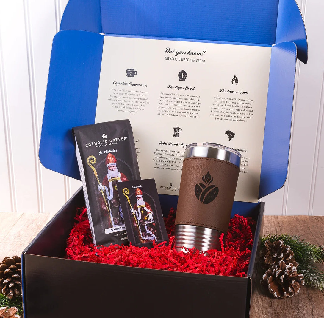 Gift-giving and taste-testing just got easier with our coffee gift sets. Share saint-inspired coffee and mug sets, beautifully boxed for any celebration.